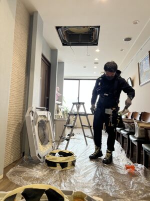 本日は、地域の医院様にて業務用エアコン(天井カセット形)の分解洗浄を実施いたしました。不特定多数の方が来院される医療機関では、空気の質が患者様の安心に直結します。
